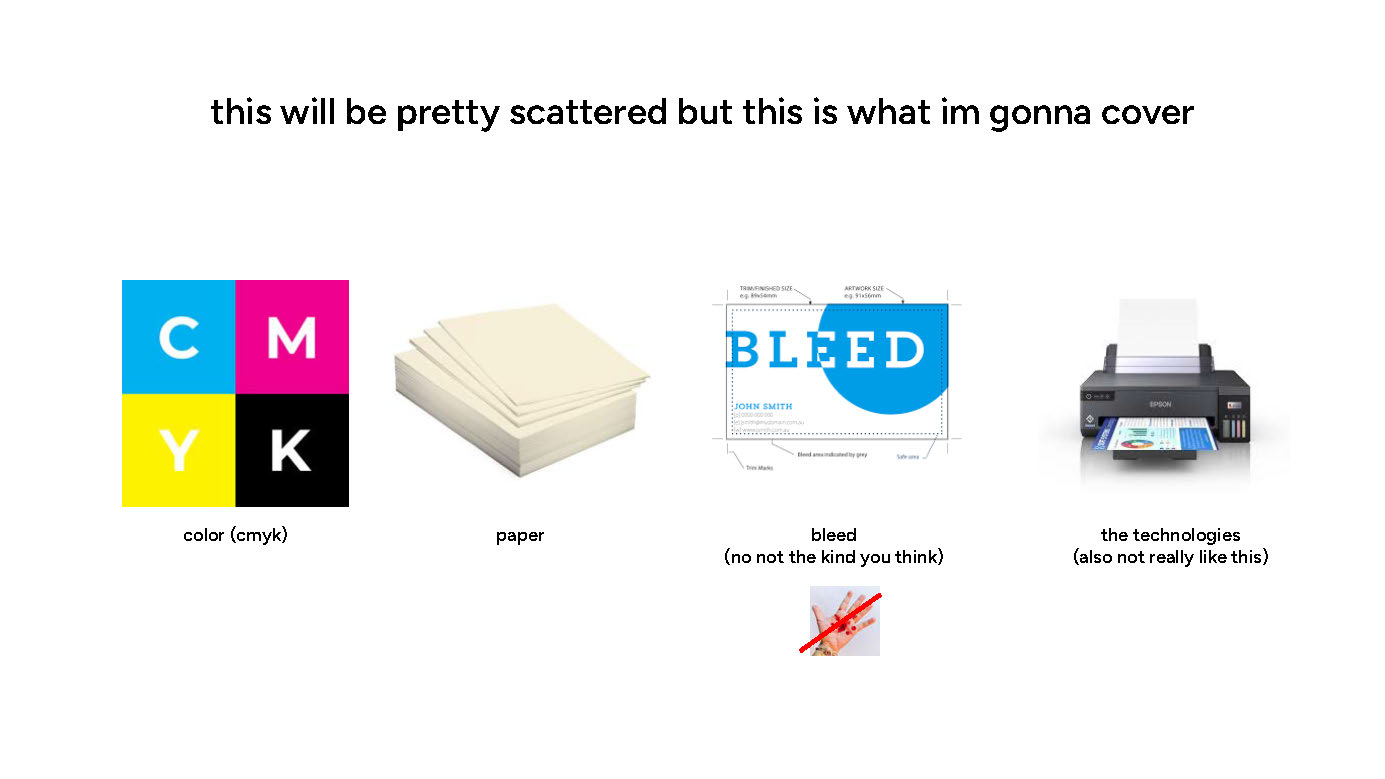 But, this is the best I can do by.. googling a quick chart of the spectrum of paper weights! And honestly, this isn’t even the end of it! But it’s a good guide if you are sticking to your home printer. Don’t overdo it. (although, again, when I did my digital cleaning (zine) which was printed at home, on a textured 300gsm paper, my printer took it like a champ. shoutout to it.)