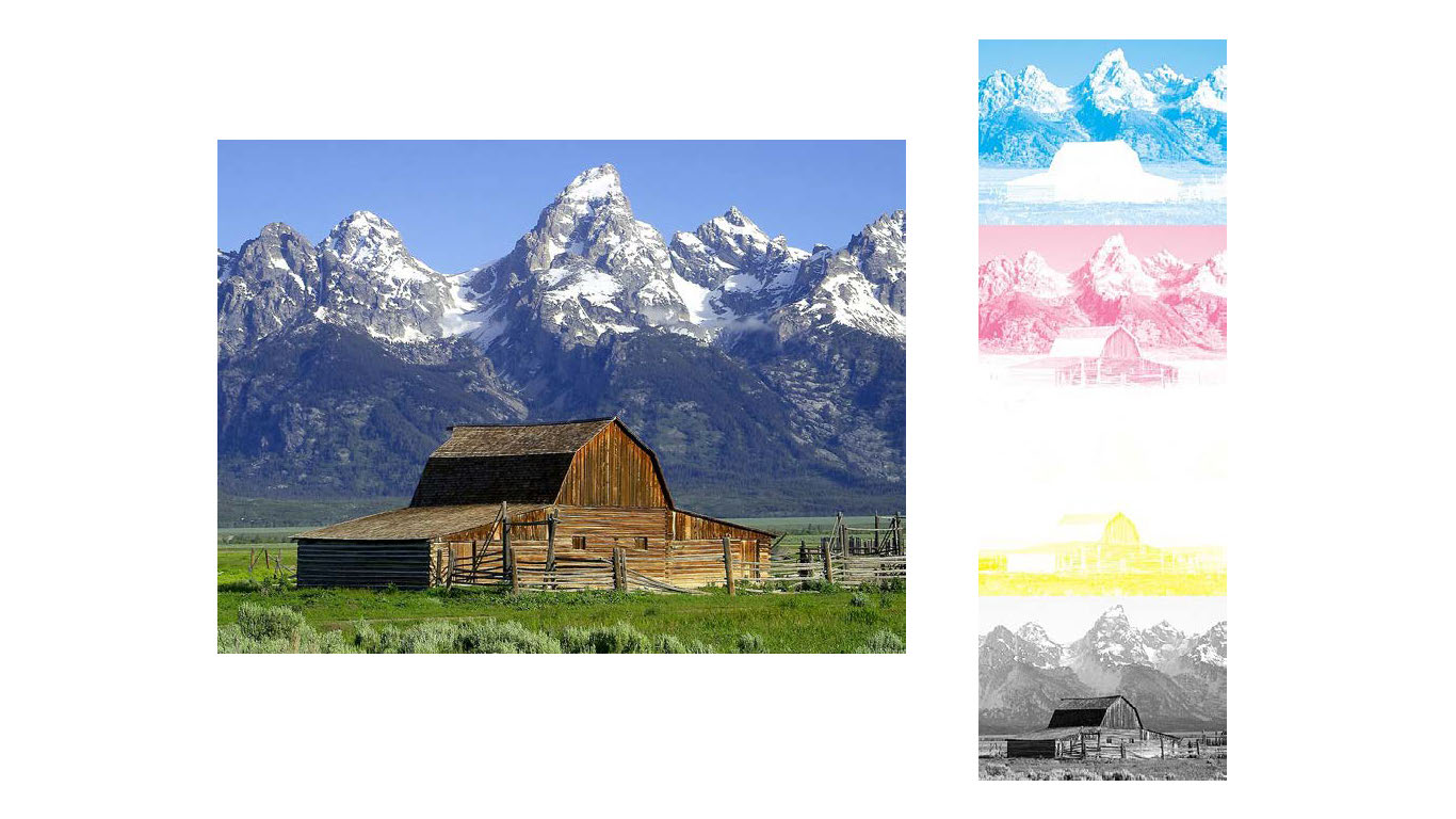 But the most fun part to me is also talking about how the printing of each of these four colors works – in this example, you might think that this teal color would be mostly made up of the Cyan and not much else…