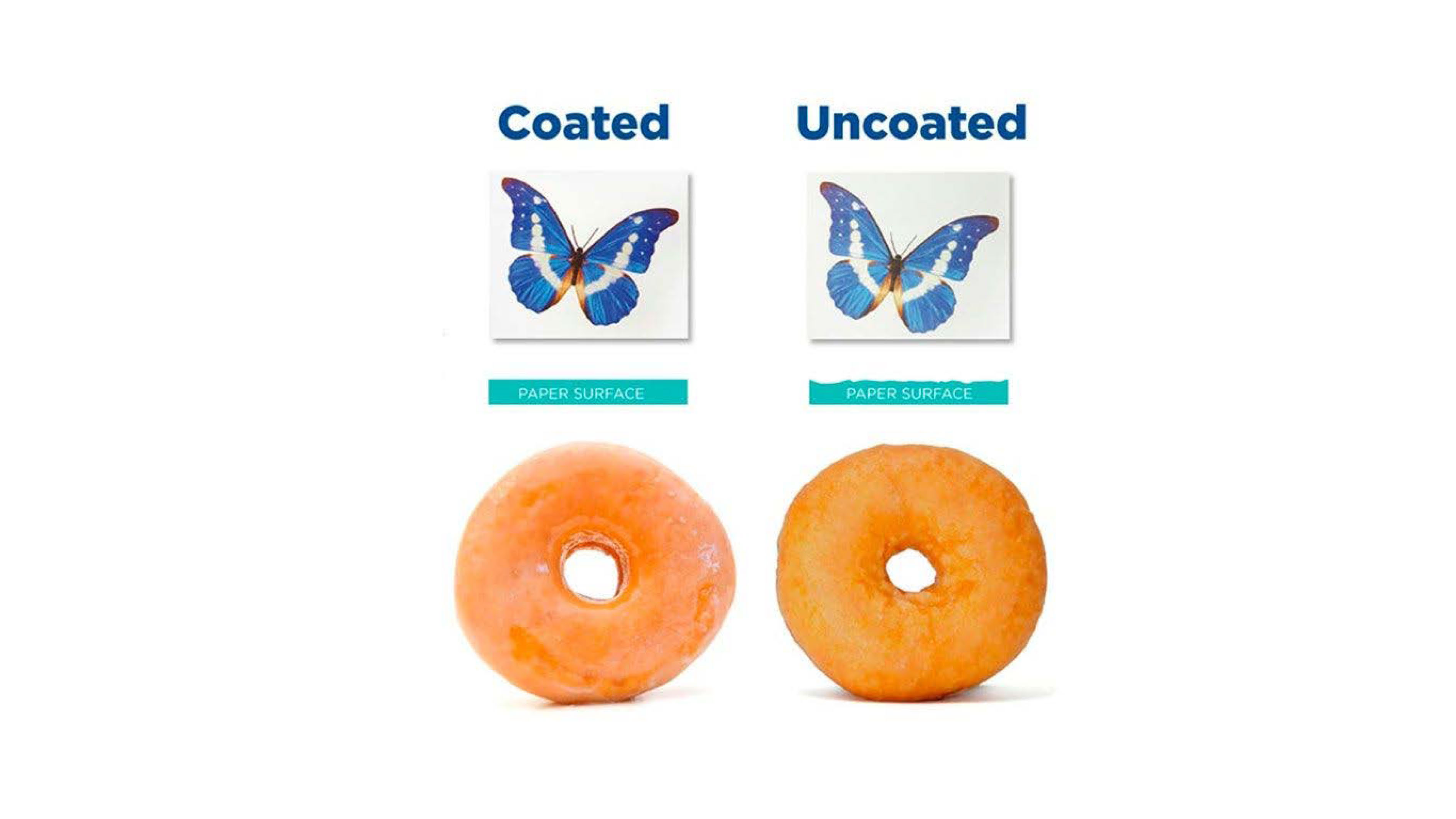 Aside from weights we’ve also got coatings! I really liked this image describing it visually, cause it basically is like a donut glaze. But for paper.