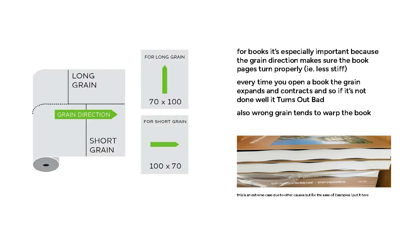 For a book though? It is crucial. If you have the grain direction be perpendicular to the spine, it will warp, be hard to fold and open as every time you open a book it creates tension on the grain. So Be Careful.