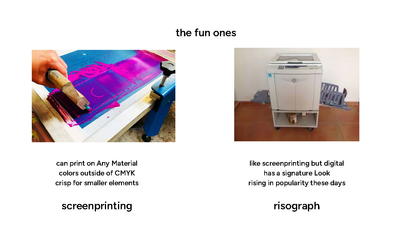 Risograph is to screenprinting like digital is to offset print. It also kinda has it’s own vibe because even if it is less involved than screenprint, it’s got little print quirks to go with it. A lot of artists lean into it though and it is awesome.